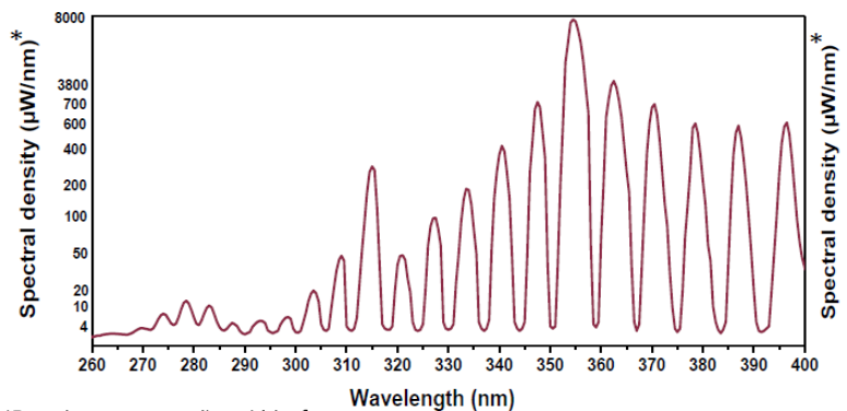 光学参数 COMBLAS UV 光谱范围 250 – 400 nm 总输出功率 16mW 重复频率 1 kHz 功率谱密度PSD 波长PSD (uW/nm) 249 253 265 269 273 278 282 287 292 0.2 0.2 0.15 4.0 7.5 12.8 9.4 4.0 4.0 298 303 309 315 320 327 333 340 347 4.00 20.0 50.0 300 53.0 105 210 405 700 355 362 370 378 378 396 7800 3800 680 590 585 600 机械参数 COMBLAS UV 工作电压 100-240 V VAC 50/60 Hz 冷却 风冷 工作温度 18-25度 激光头尺寸 288 x 470 x 126 mm 控制器尺寸 21 x 17 x 5 mm 激光头重量 11 kg 控制器重量 1 kg