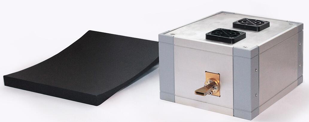 我们的线性太赫兹成像系统有两部分构成:一个太赫兹线性相机和一个太赫兹源。两个设备同步优化集成。THz发生器上配置有一个喇叭锥设计如下图所示,使得信号发生器发射出的THz光束覆盖到传送带的面积大小。喇叭锥角可以均匀的将THz光束分散开,确保接收端的线性相机上各处功率一样。相机的像素决定了成像的空间分辨率为1.5mm,这个分辨率足够满足于大多数工业应用。