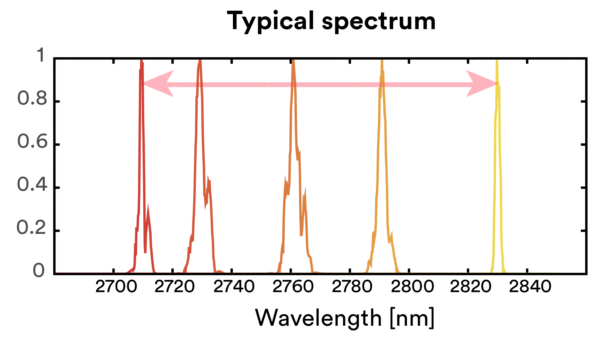 修正波长在2710nm到2830nm范围内或者依据需要具有可调谐选项,同样适用于窄带线宽。
