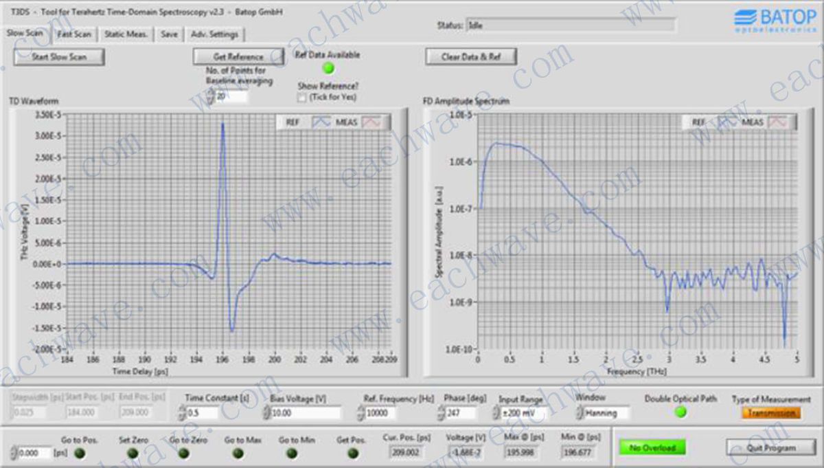4, 配套光谱仪软件, 可实现快/慢扫描、成像和角度扫描等,THz频谱计算分析如计算材料的折射率等。