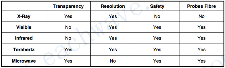 对比X射线,THz技术的优点是光子能量低,THz辐射没有电离特性,对人体和其他生物都是完全无害的。所以可以没有限制的应用于各种公共场合。