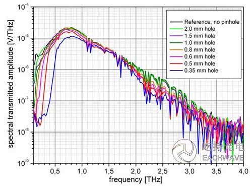 太赫兹时域光谱仪系统中的脉冲THz是一个宽谱的太赫兹光束,这种情况下小孔将会起到高通滤波器的作用。