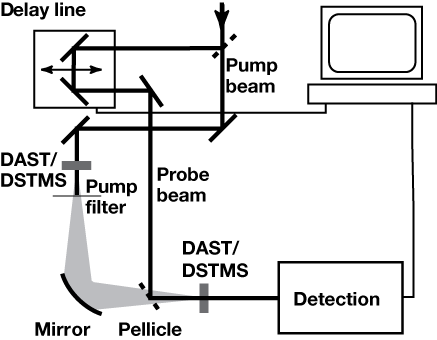 探测:在太赫兹时域光谱学中,可以使用常见的技术来检测有机晶体中产生的太赫兹信号。为了在较宽的THz范围内达到最佳的检测效率,同样的有机材料也可以用于电光检测,使用与标准电光采样不同的原理,而标准电光采样仅限于光学各向同性材料。对于有机晶体(或其他双折射材料),THz感应的透镜可以使用与电光采样类似的灵敏度。