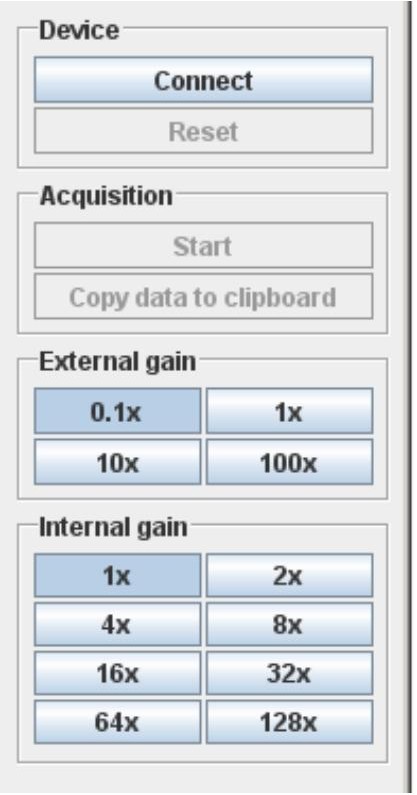 External gain。该组中的按钮选择外部(相对于 ADC 芯片)前置放大器的增益。
